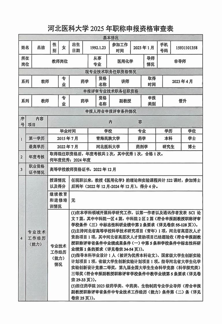 专业技术职务任职资格情况一览表-吕洁