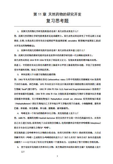 第十一章天然药物的研究开发复习题(史清文教授编辑整理)